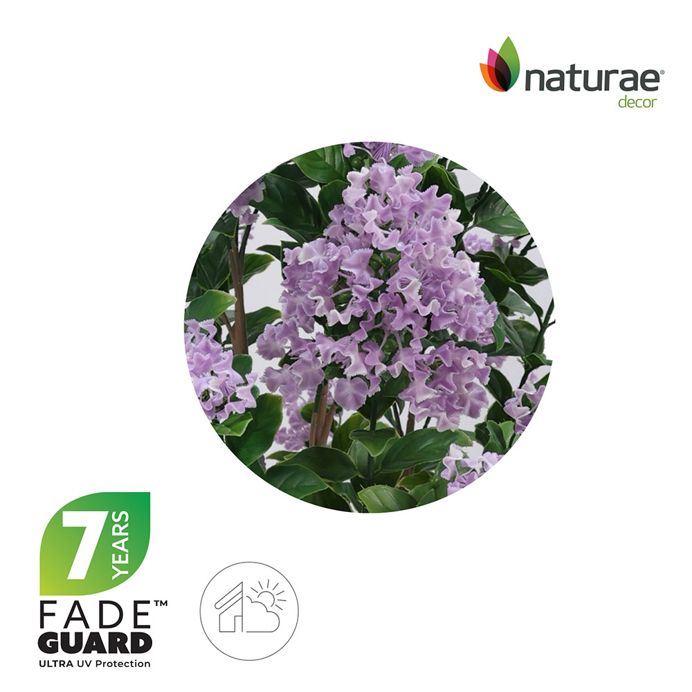 Add vibrant, refined color to your space ? without the upkeep. The Naturae Decor Purple Crape Myrtle beautifully replicates the lush, delicate blooms of a real crape myrtle in an elegant 24-inch format, perfect for enhancing entryways, patios, balconies, or bright indoor areas. Crafted with UV-resistant materials, this artificial flowering tree is designed to withstand the elements while maintaining its rich purple color and lifelike appearance season after season. No watering. No pruning. No maintenance ? just effortless beauty all year long. Ideal for framing a front door, elevating a landscape design, or adding a sophisticated floral accent to a commercial setting, it delivers a realistic, durable, and maintenance-free d?cor solution. Backed by a 7-year anti-fading warranty, it offers long-lasting performance and peace of mind. Bold color. Zero maintenance. Lasting impression.