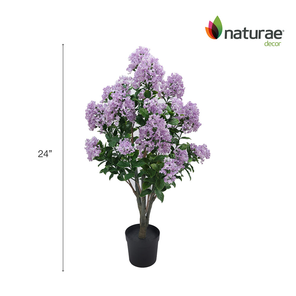- Includes one 24-inch tall Naturae Decor artificial purple crape myrtle flower tree in a non-removable pot (can be placed inside a larger Decorative pot).