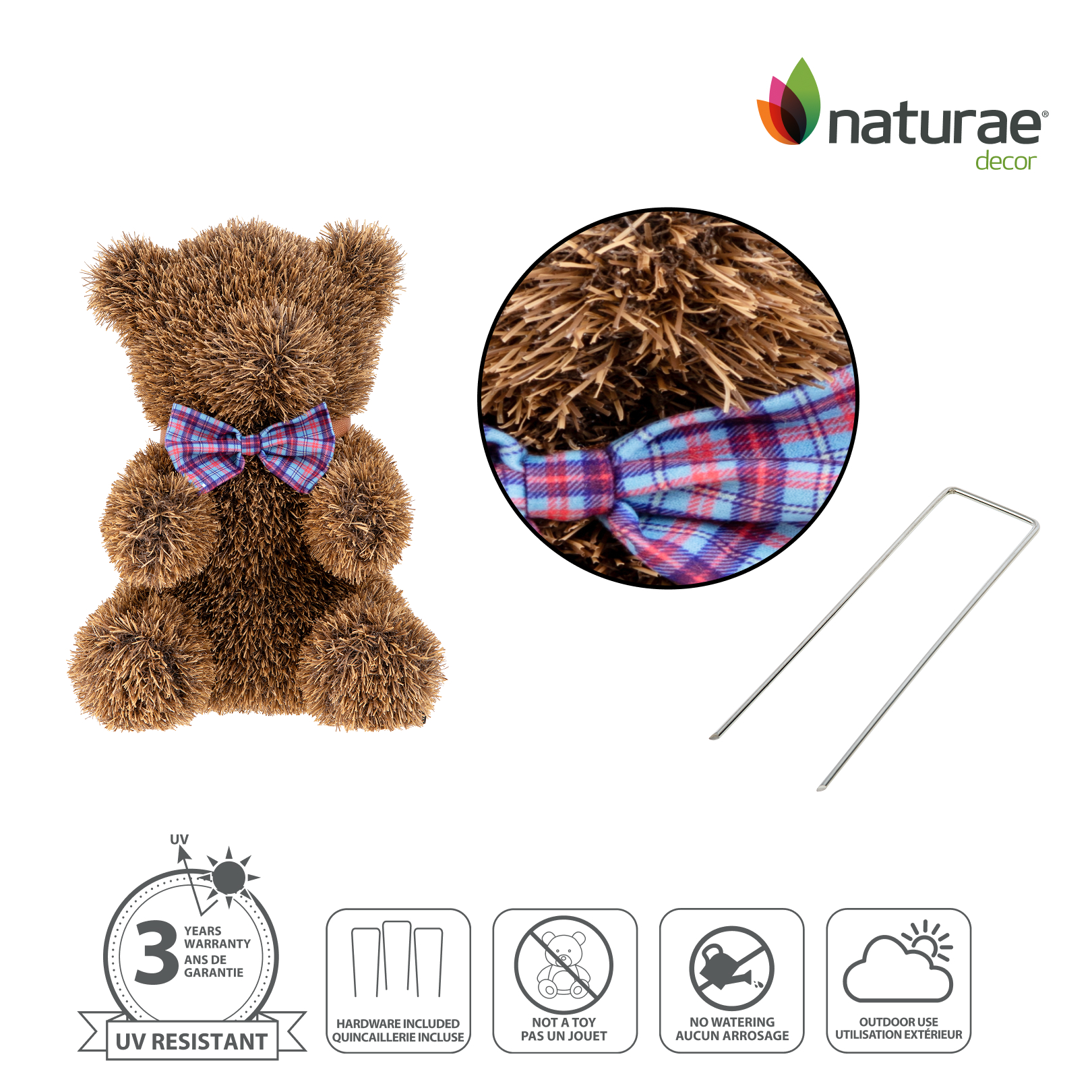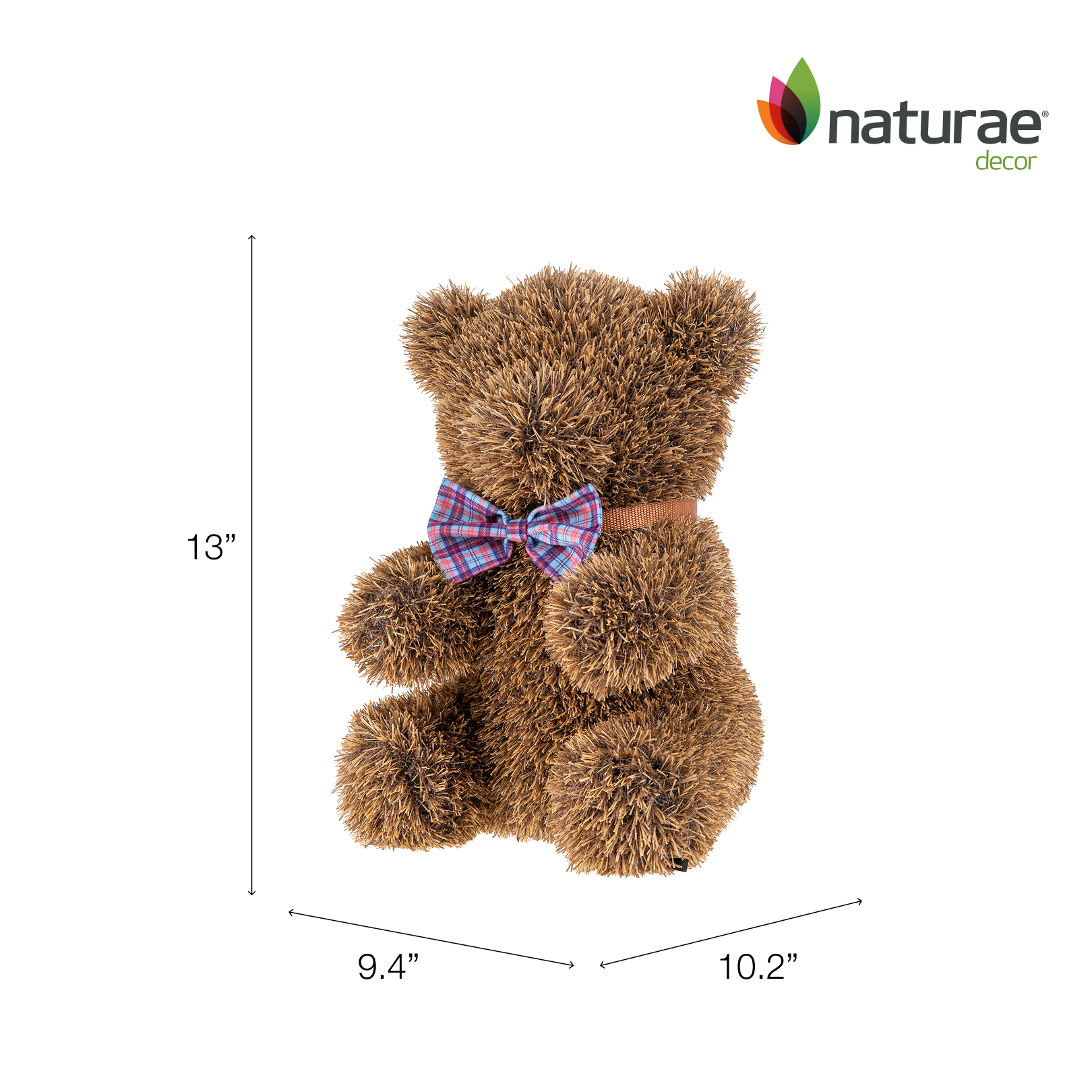 Naturae Decor artificial topiary bear brown with bow tie – artificial grass garden plush topiary – 13 in