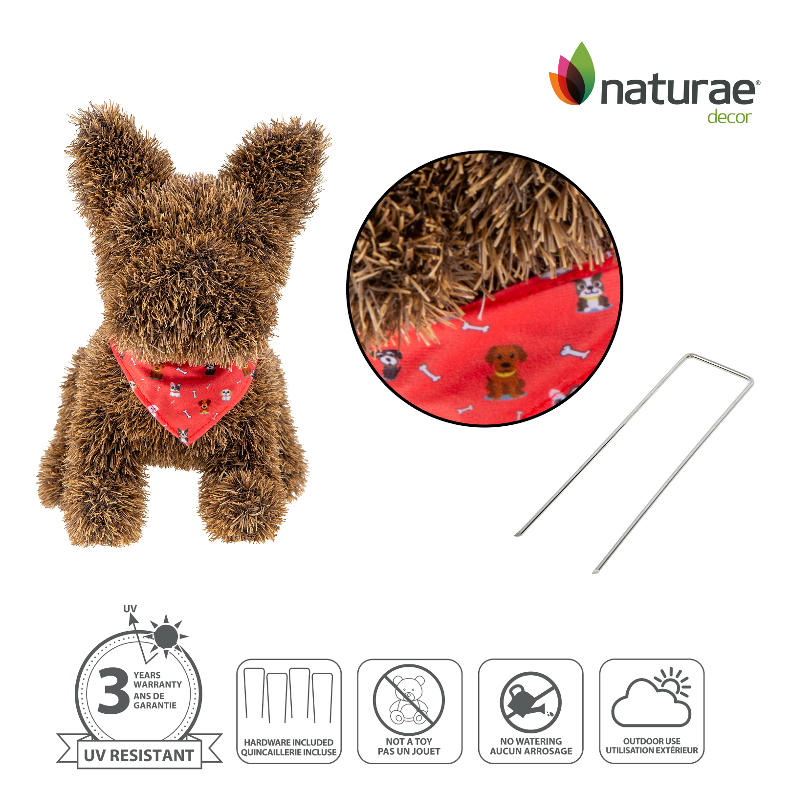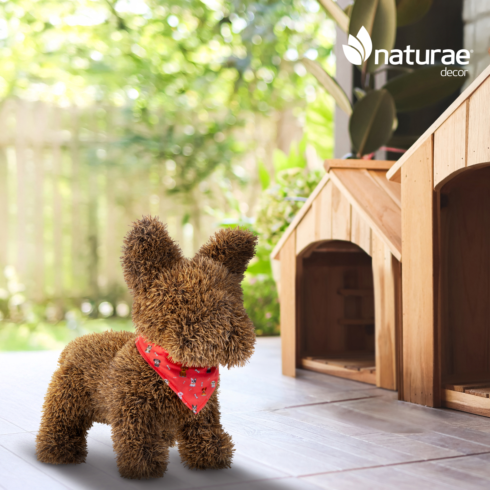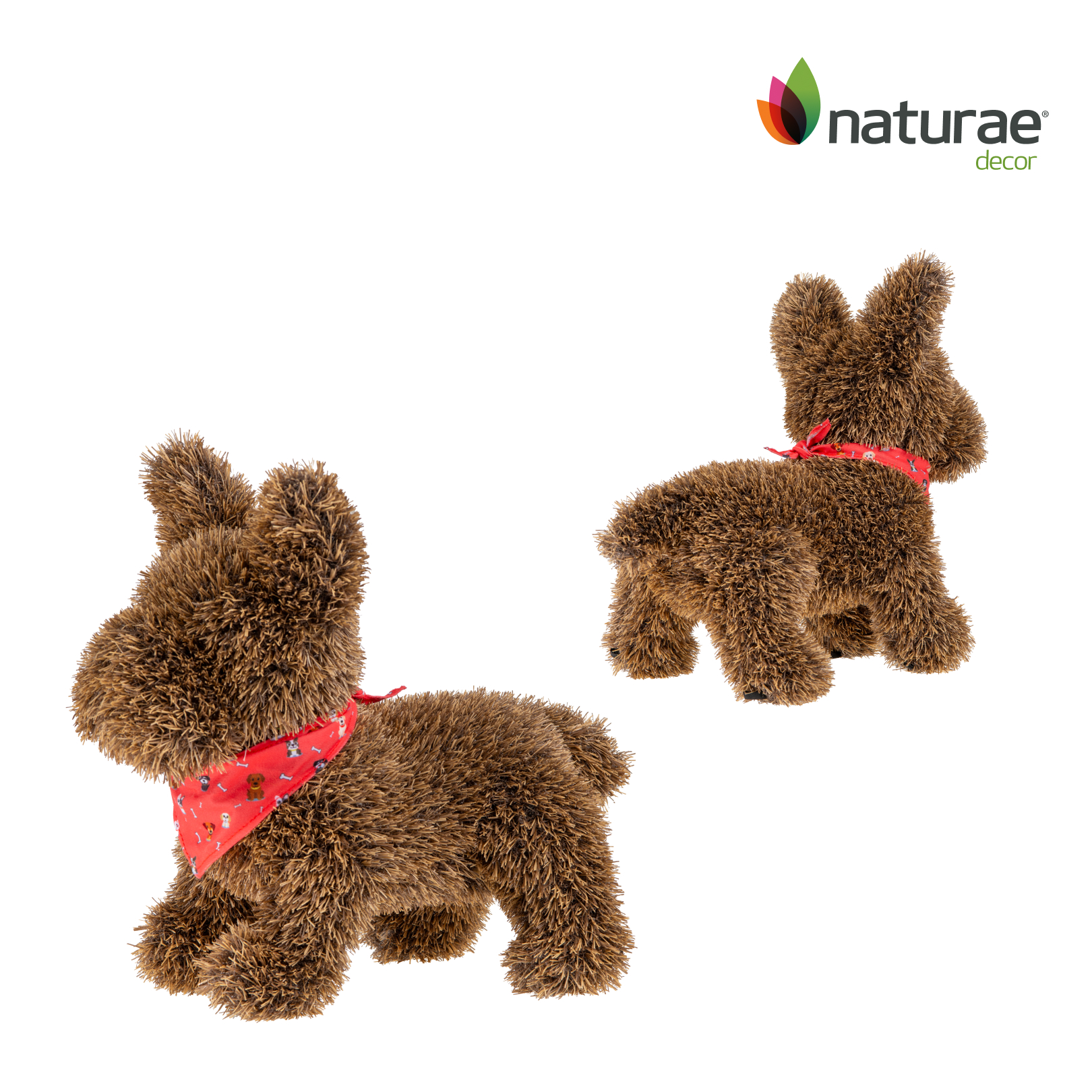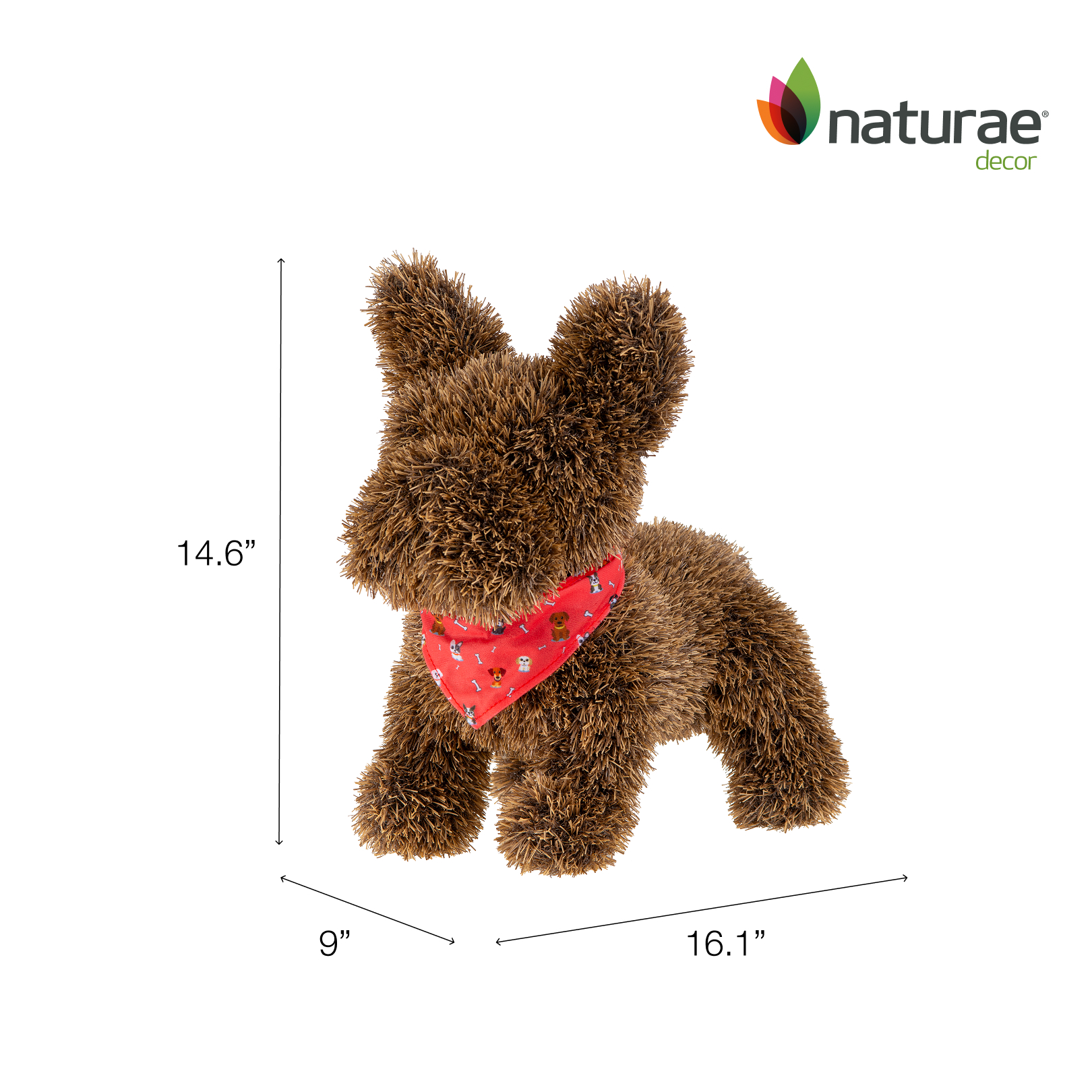 Naturae Decor artificial topiary frenchie dog brown with BOW TIE – artificial grass garden plush topiary – 14 in