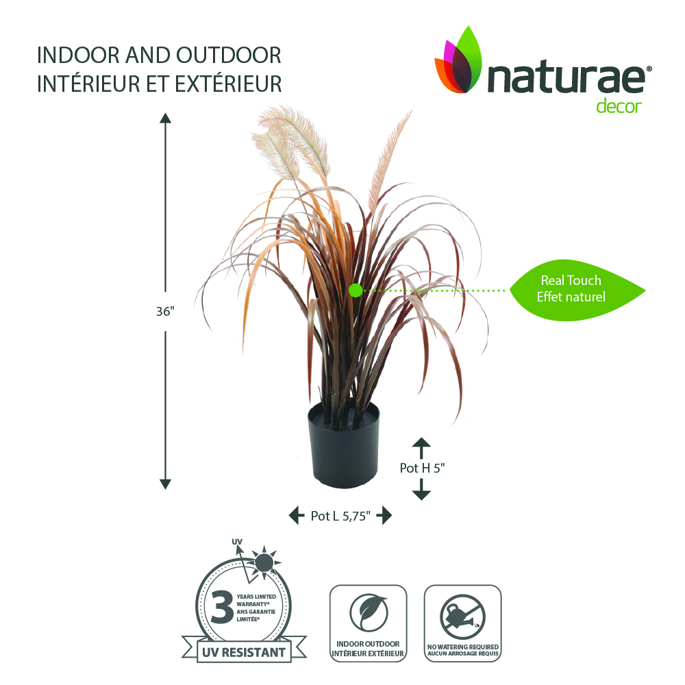 Naturae Decor black grass with leaves Plant – Lifelike Artificial Indoor and Outdoor House Plant – UV Resistant – 36 in High