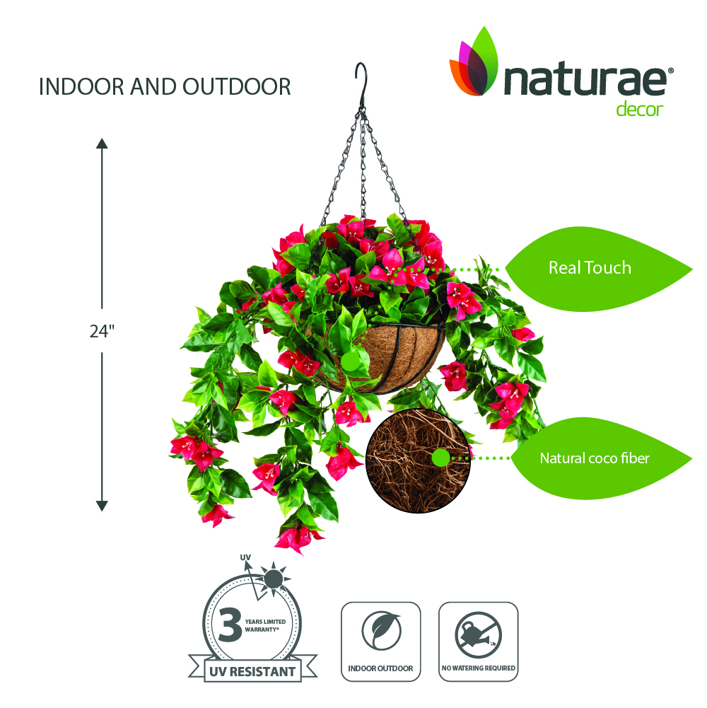 Naturae Decor bougainvillia hanging basket- Lifelike Artificial Outdoor – UV Resistant