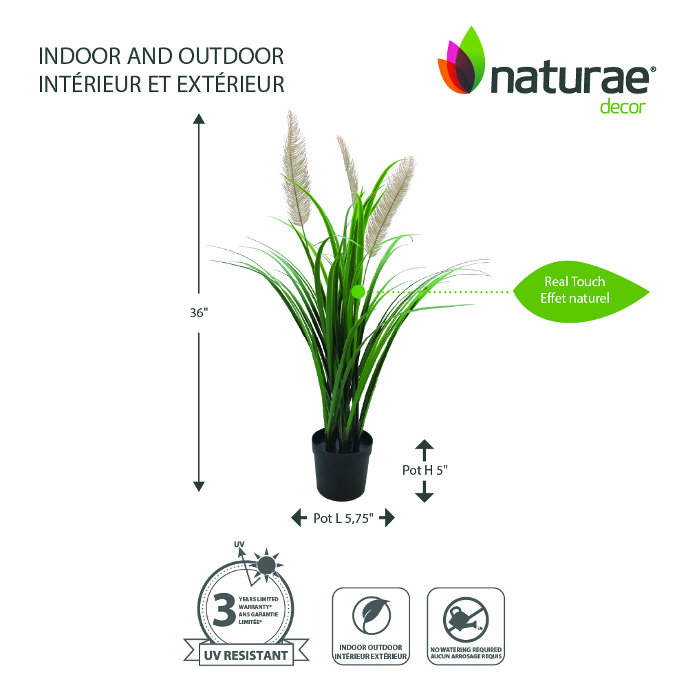 Naturae Decor black grass with leaves Plant – Lifelike Artificial Indoor and Outdoor House Plant – UV Resistant – 36 in High