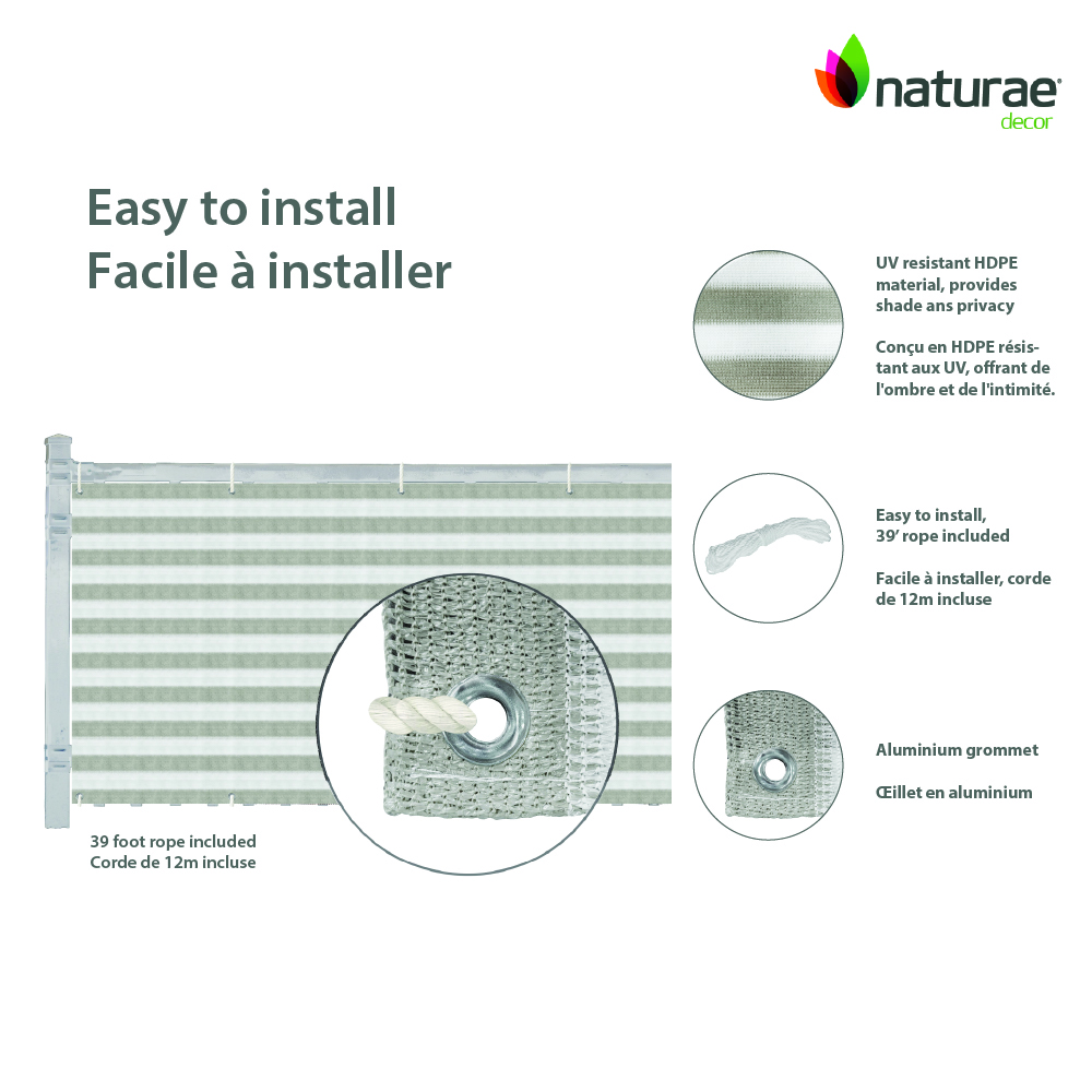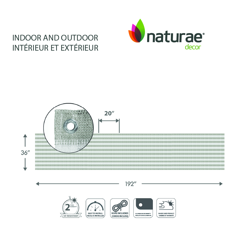 Naturae Decor balcony screen are the ultimate solution for your next DIY project. They can be easily cut to fit any space and are easy to install securely using the included cord. You can fold and roll it to cover any shape or surface flawlessly, without any gaps. Perfect to create privacy on your deck, patio, or balcony. The screens are made of premium quality UV resistant to prolong their life.  A cost-effective way to spruce up your favourite space. Included in each package are balcony screen and the 35 ft cord to easily install it in your space. Backed by our 2-year warranty, our 3′ x 16′ in screen is durable and made to last through the seasons.